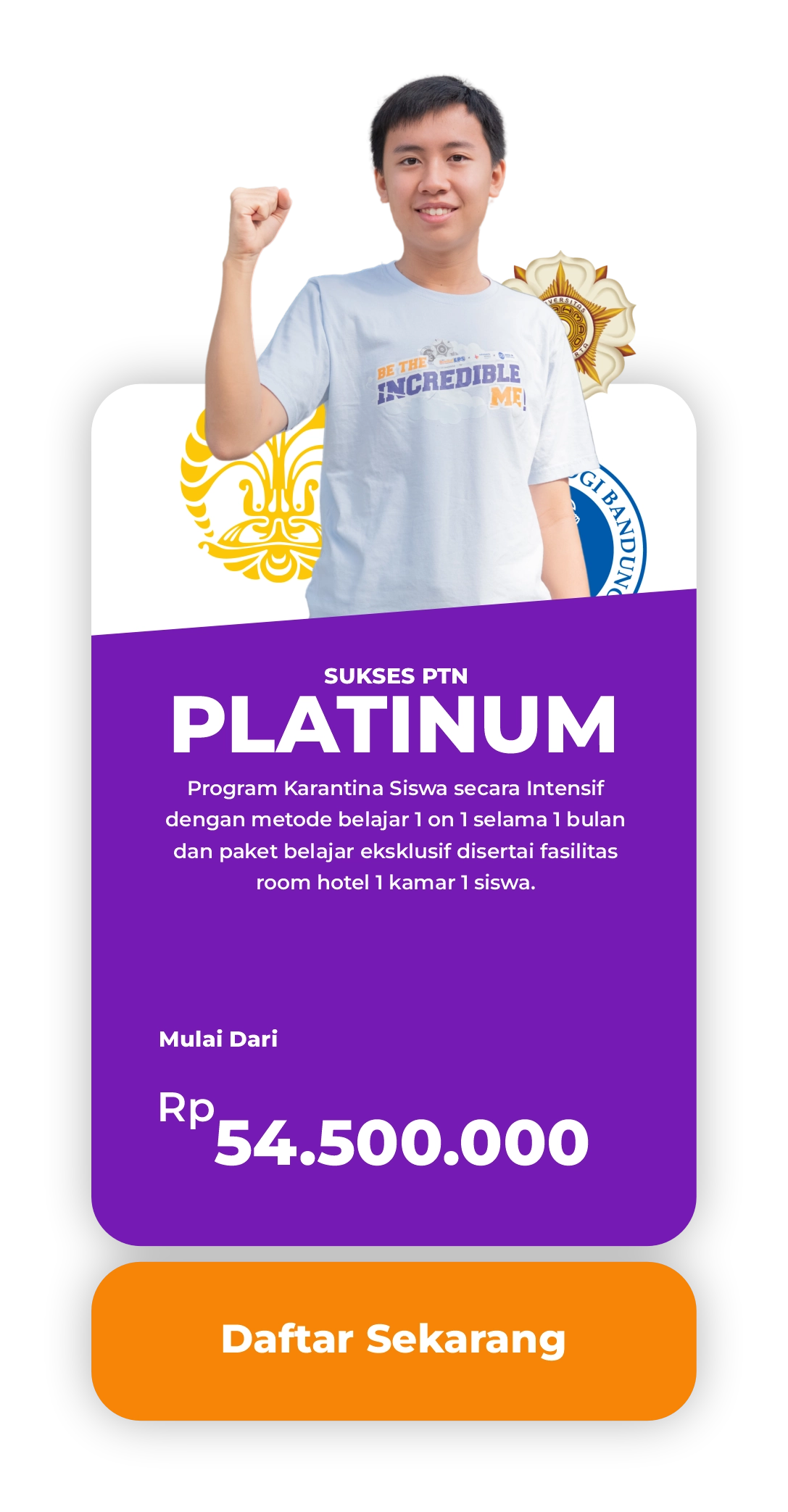 Implementasi efektif model belajar berdasarkan hasil dari mapping kebutuhan siswa Penguasaan strategi belajar efektif UTBK SNBT/SBMPTN, SIMAK UI, UTUL UGM, & UM PTN Meningkatkan kemampuan siswa dalam memahami konsep dasar dari setiap materi Meningkatkan skill dan kemampuan mengerjakan soal secara cepat & tepat Siswa siap menghadapi UTBK SNBT/SBMPTN, SIMAK UI, UTUL UGM & UM PTN Siswa meraih Jurusan Terbaik di PTN Favorit yang diinginkan